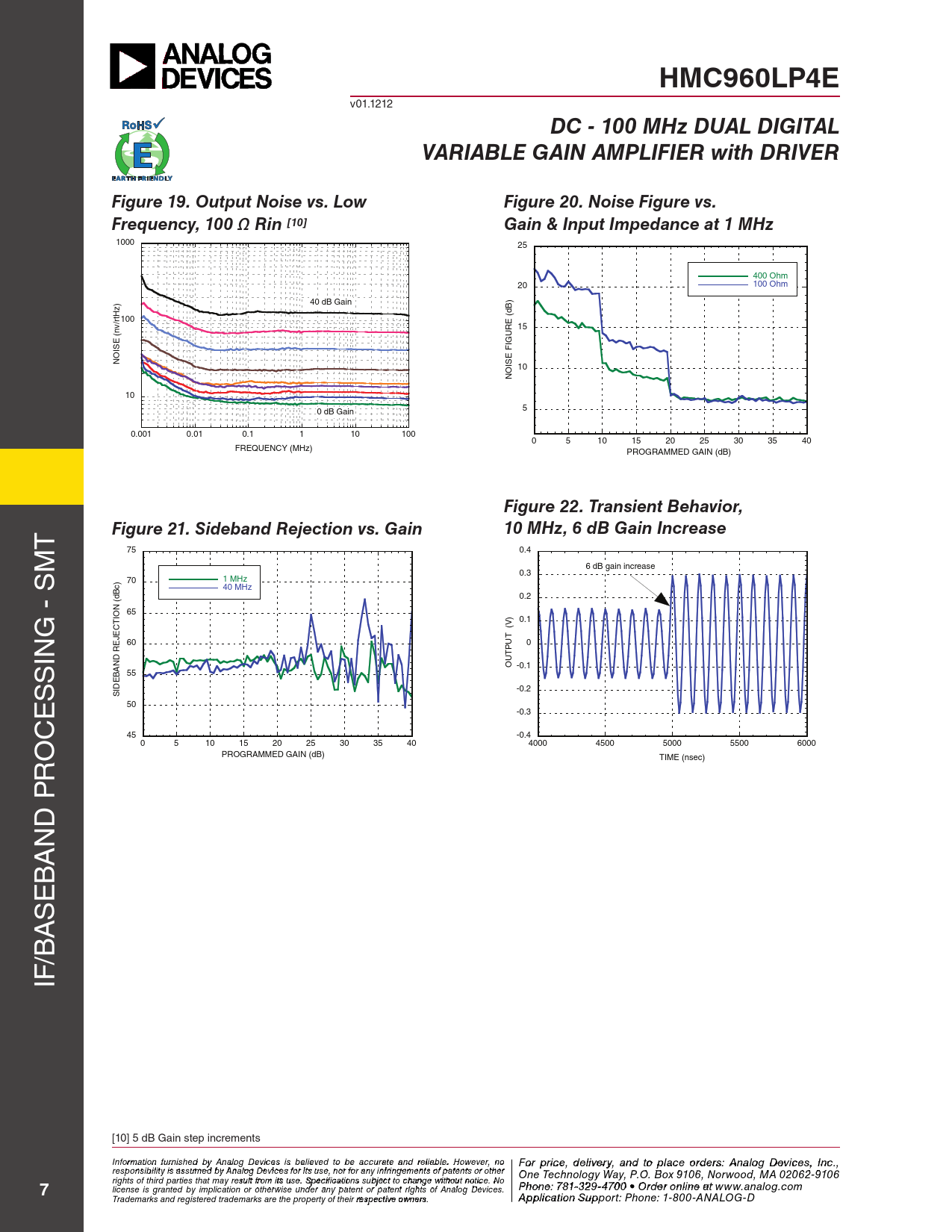1000 25 400 Ohm 20 100 Ohm ) 40 dB Gain z B) tH (d 100 /r E v R 15 (n U E IG F OIS N ISE 10 O N 10 5 0 dB Gain 0.001 0.01 0.1 1 10 100 0 5 10 15 20 25 30 35 40 FREQUENCY (MHz) PROGRAMMED GAIN (dB)