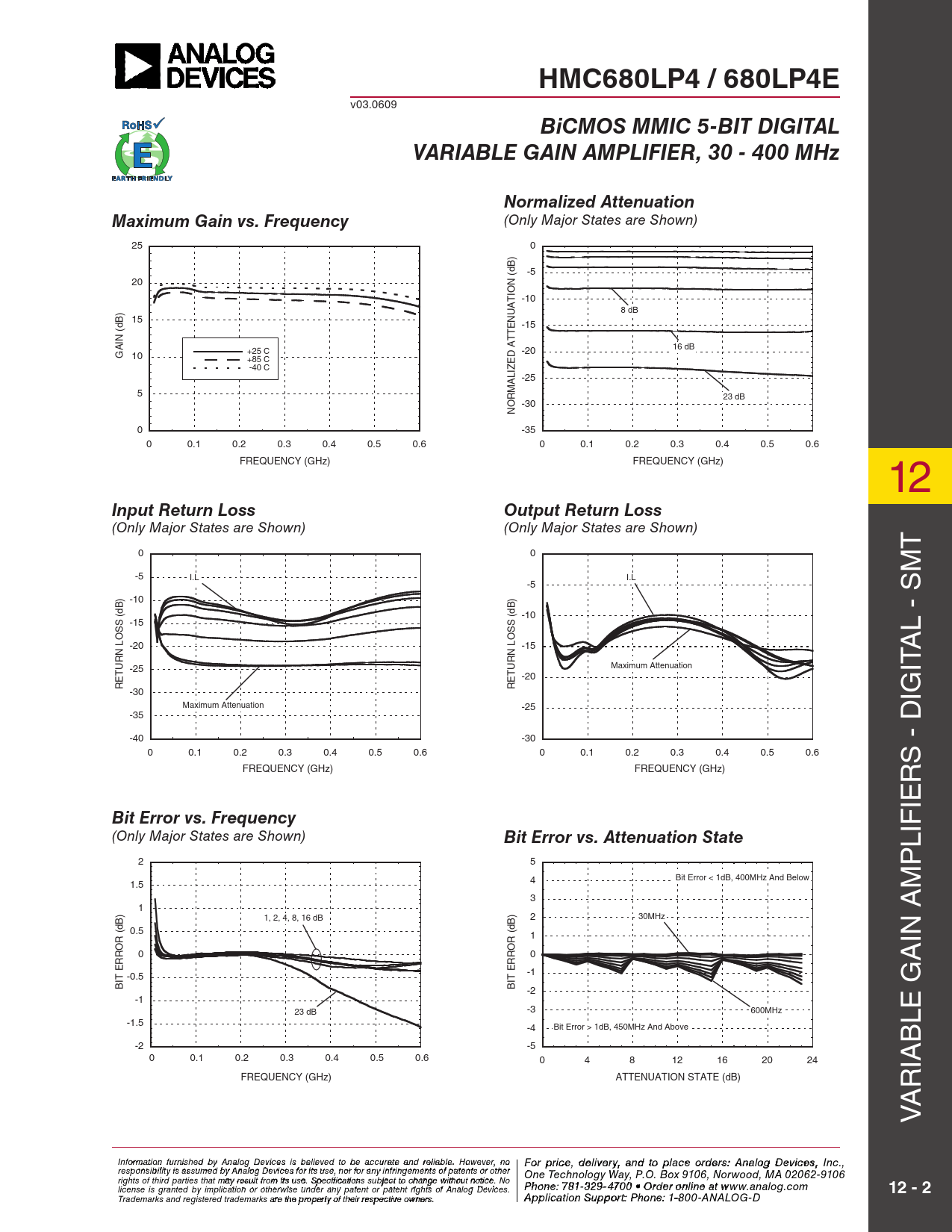 HMC680LP4 / 680LP4E BiCMOS MMIC 5-BIT DIGITAL VARIABLE GAIN AMPLIFIER, 30 - 400 MHz Normalized Attenuation