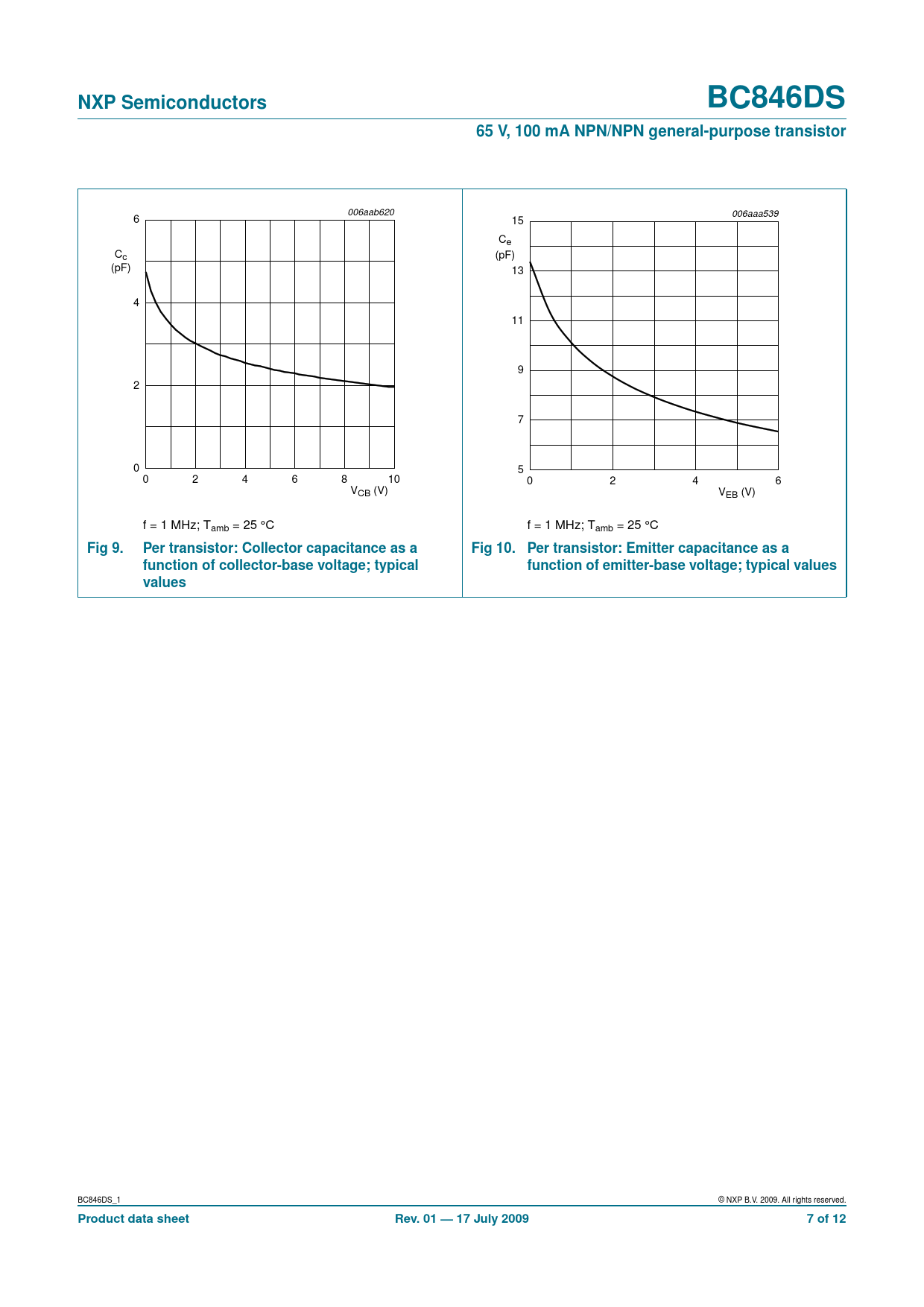 NXP Semiconductors. BC846DS. 65 V, 100 mA NPN/NPN general-purpose transistor. Fig 9. Per transistor: Collector capacitance as a