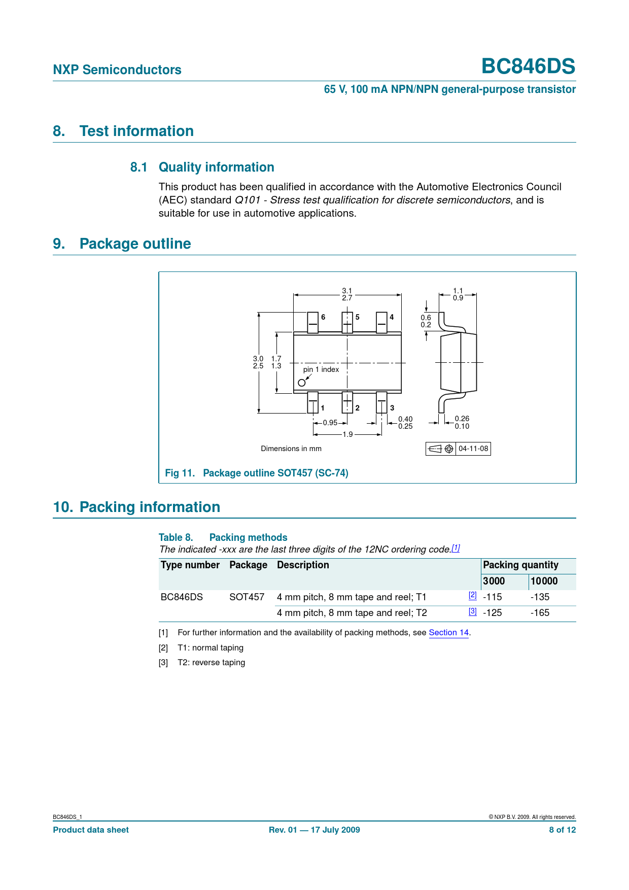 Product data sheet Rev. 01 — 17 July 2009 8 of 12