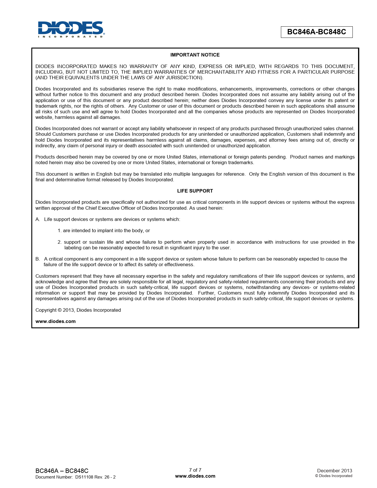 | Pages / Page | 7 / 7 — BC846A-BC848C. IMPORTANT NOTICE. LIFE SUPPORT. www.diodes.com |