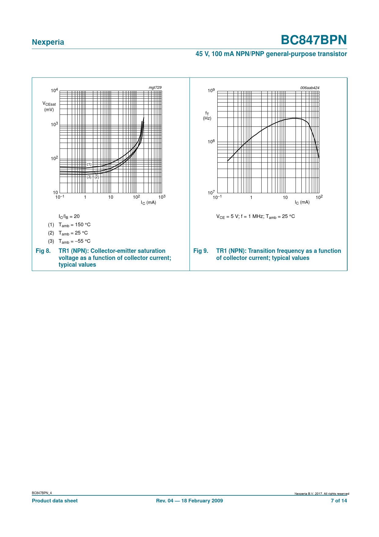 | Pages / Page | 14 / 7 — Nexperia. BC847BPN. 45 V, 100 mA NPN/PNP general-purpose transistor. Fig … |