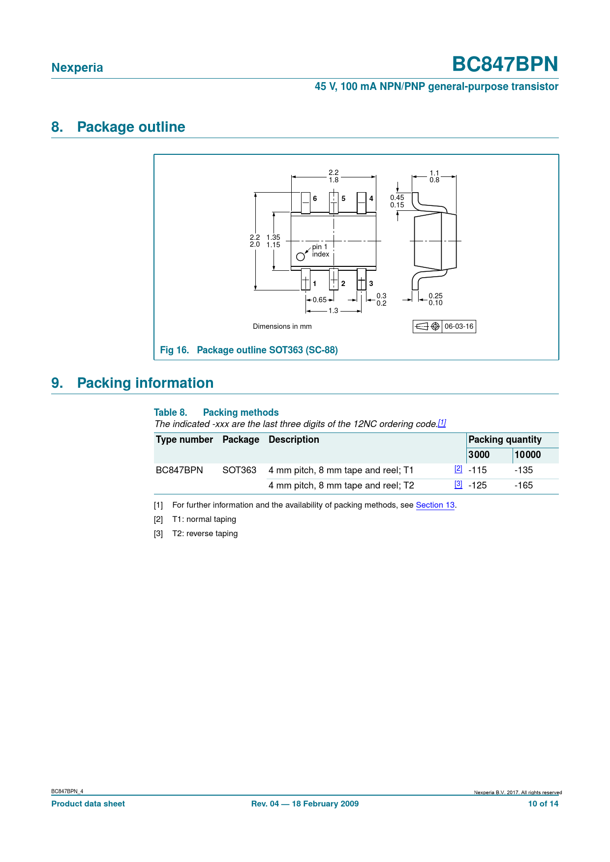 Fig 16. Package outline SOT363 (SC-88) 9. Packing information Table 8. Packing methods