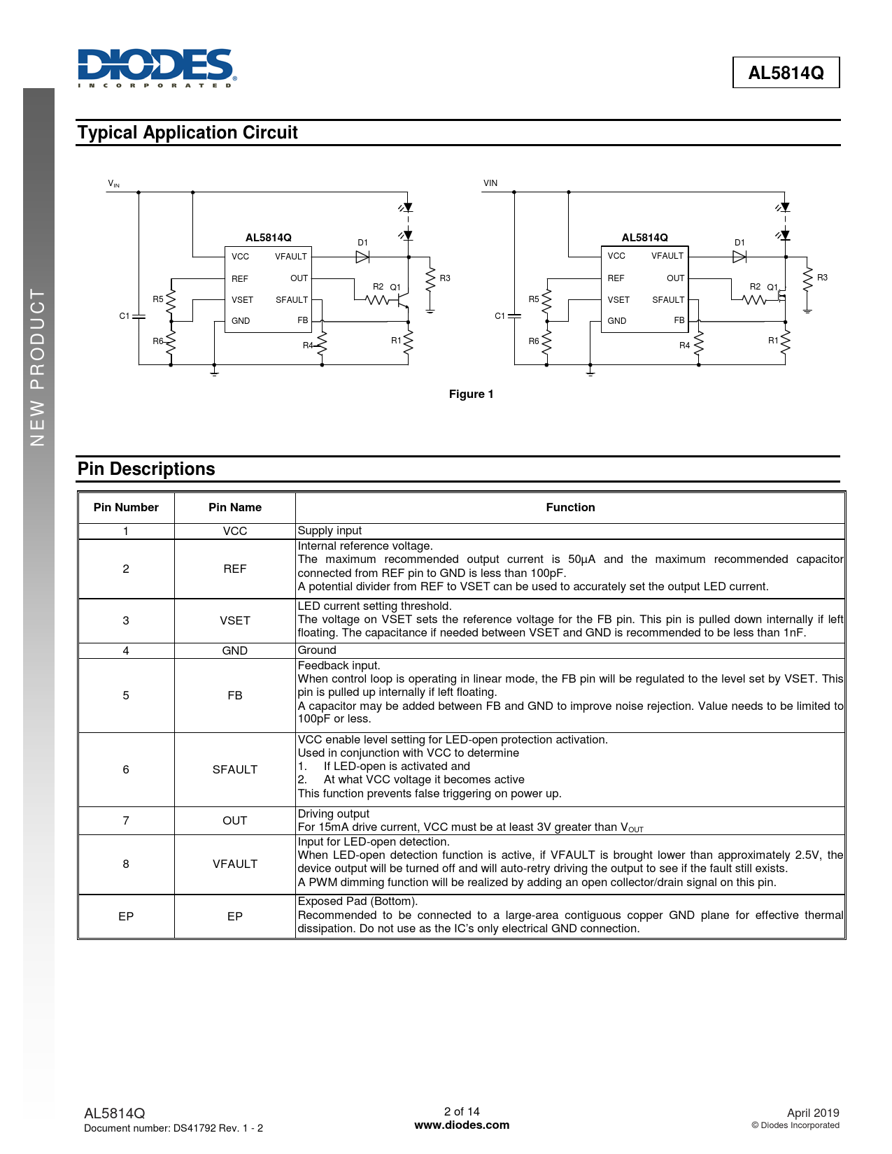 | Pages / Page | 14 / 2 — AL5814Q. Typical Application Circuit. R P. Figure 1. Pin Descriptions. … |