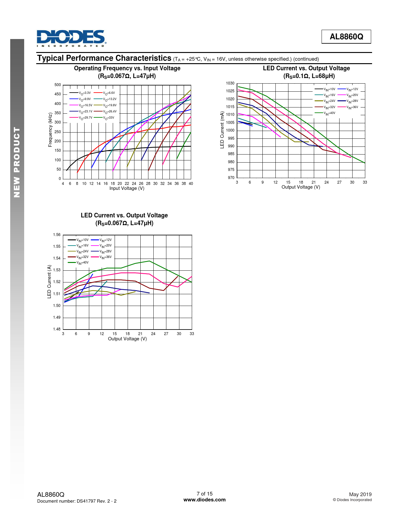 AL8860Q. Typical Performance Characteristics. Operating Frequency vs. Input Voltage LED Current vs. Output Voltage