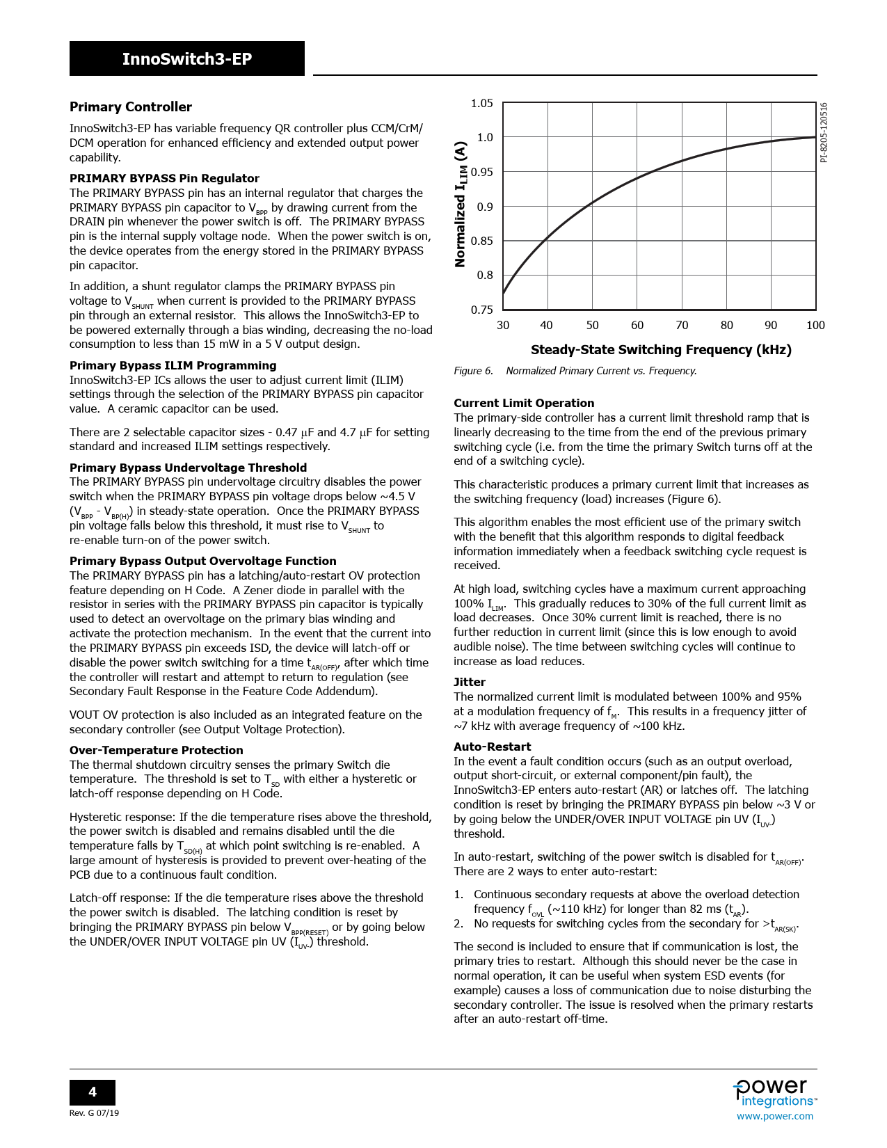 InnoSwitch3-EP Primary Controller PRIMARY BYPASS Pin Regulator LIM ormalized I Steady-State Switching Frequency (kHz)