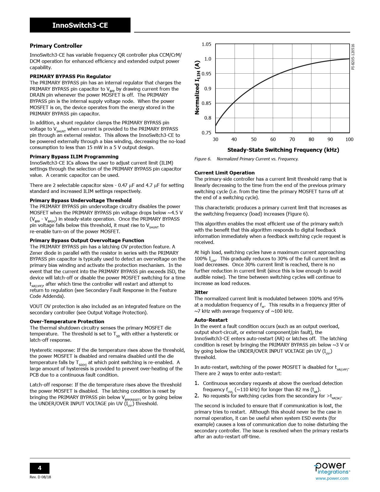 InnoSwitch3-CE Primary Controller PRIMARY BYPASS Pin Regulator LIM ormalized I Steady-State Switching Frequency (kHz)