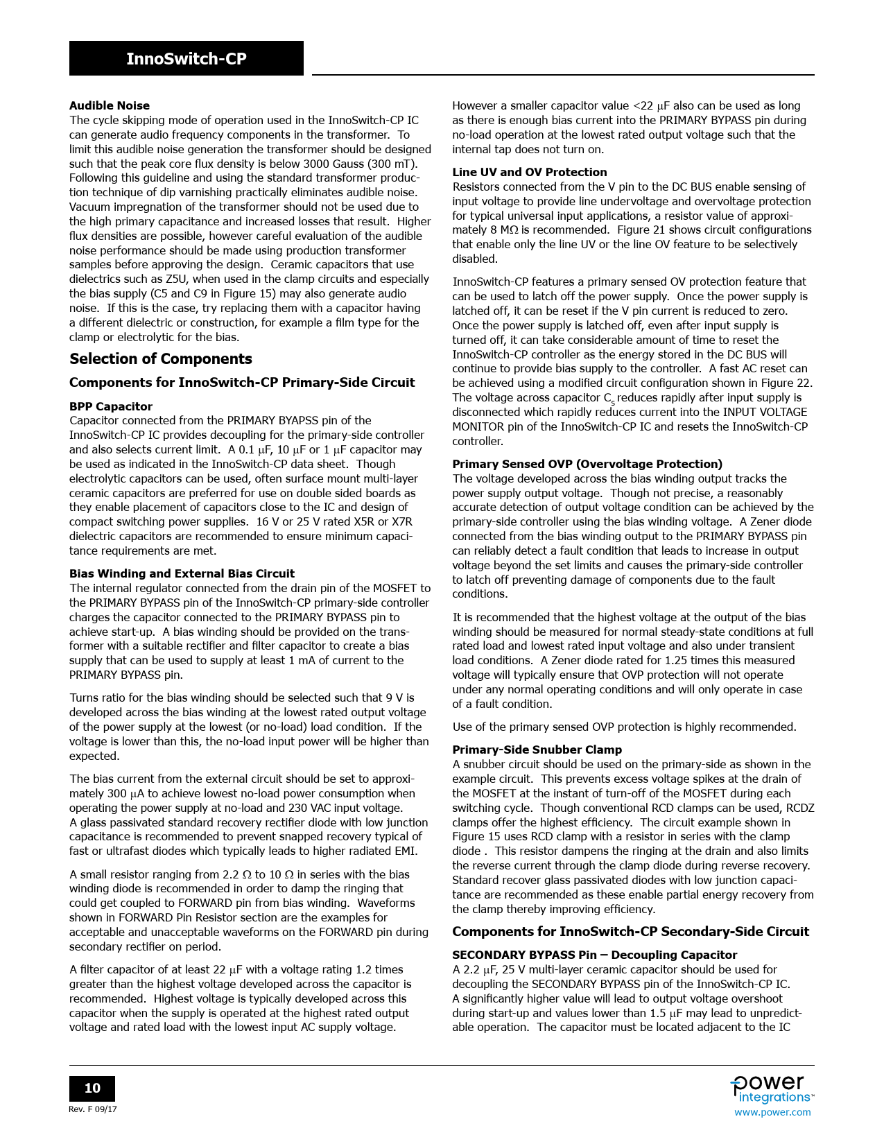 InnoSwitch-CP. Audible Noise. Line UV and OV Protection. Selection of Components