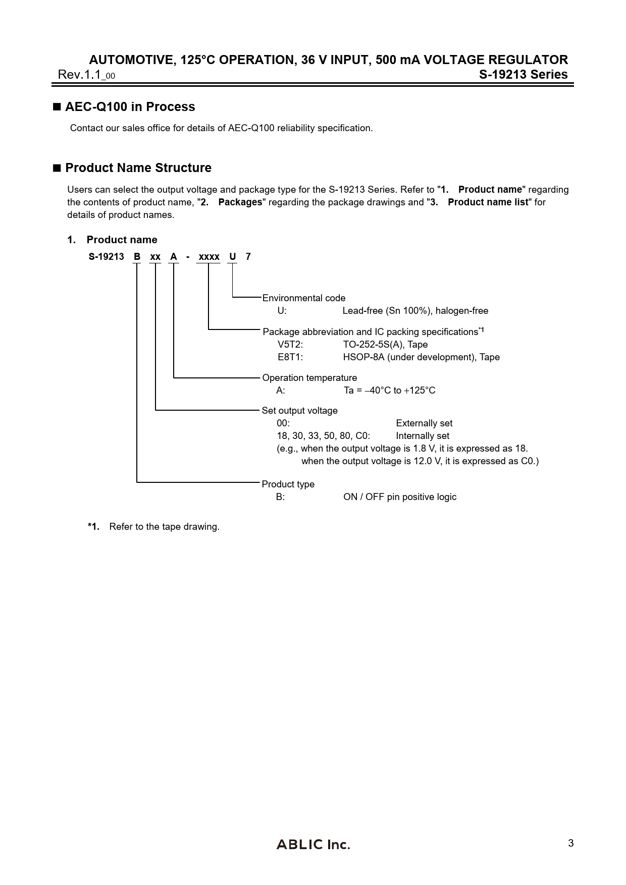 AUTOMOTIVE, 125°C OPERATION, 36 V INPUT, 500 mA VOLTAGE REGULATOR. S-19213 Series. AEC-Q100 in Process