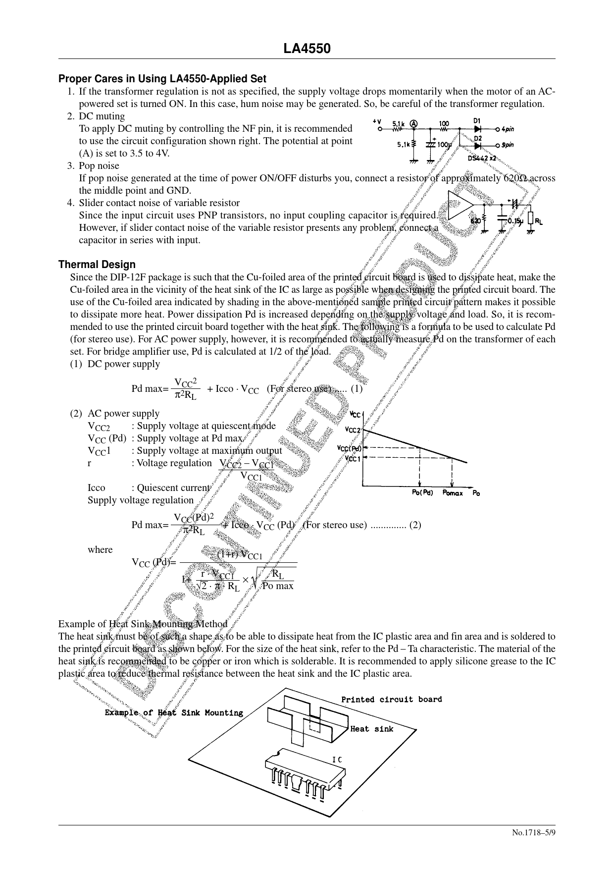 Pages / Page9 / 5 — LA4550. Proper Cares in Using LA4550-Applied Set. Thermal Design