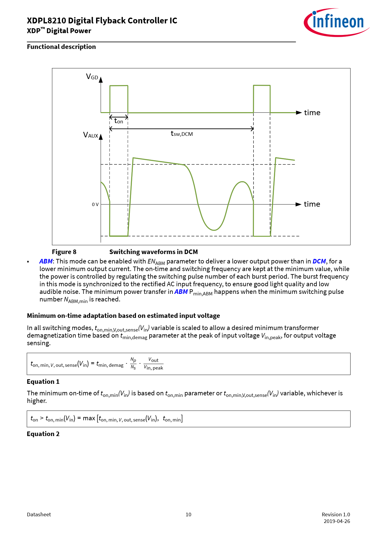 XDPL8210 Digital Flyback Controller IC. XDP™ Digital Power. Functional description. Figure 8. Switching waveforms in DCM. ABM. DCM