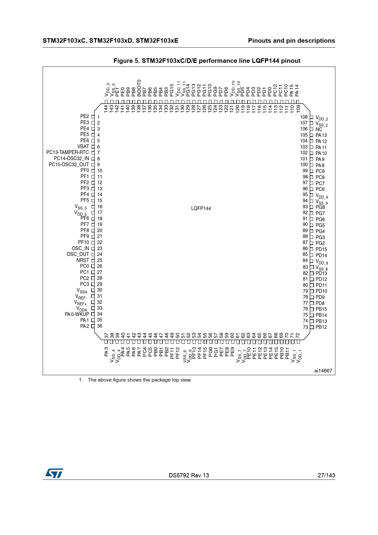 | Pages / Page | 143 / 27 — STM32F103xC, STM32F103xD, STM32F103xE. Pinouts and pin descriptions |