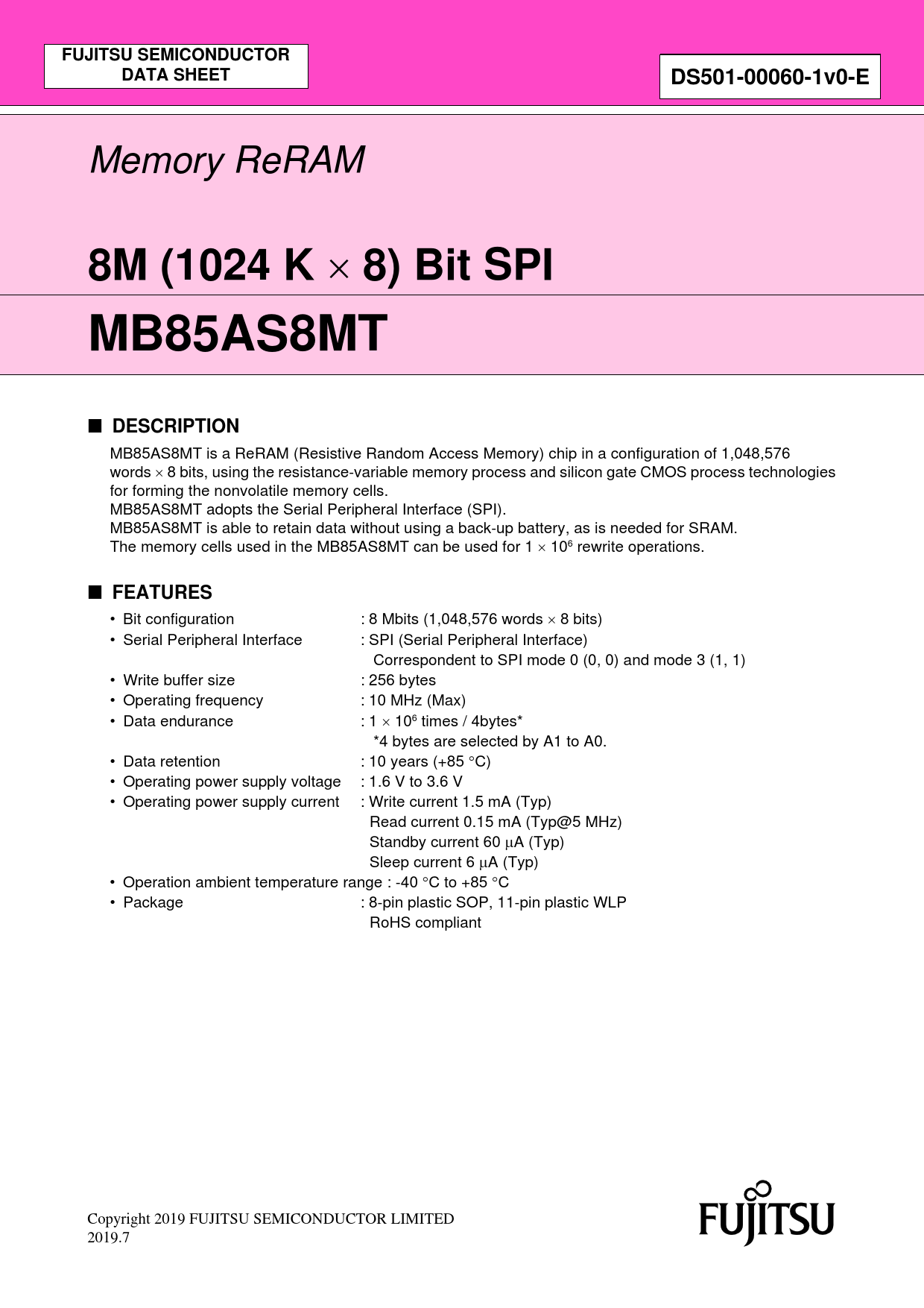 Datasheet MB85AS8MT (Fujitsu)