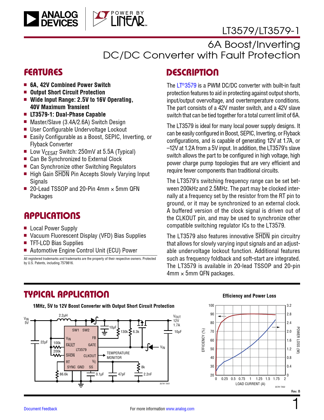 Datasheet LT3579, LT3579-1 Analog Devices, Revision: B