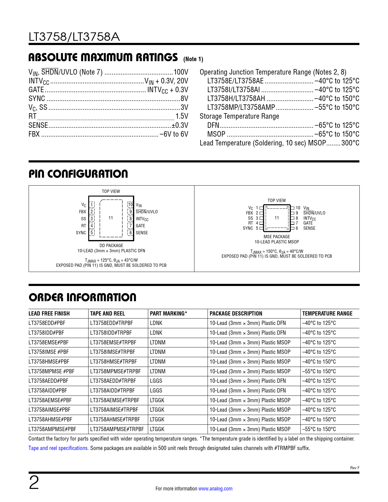 Datasheet LT3758, LT3758A (Analog Devices) - 2