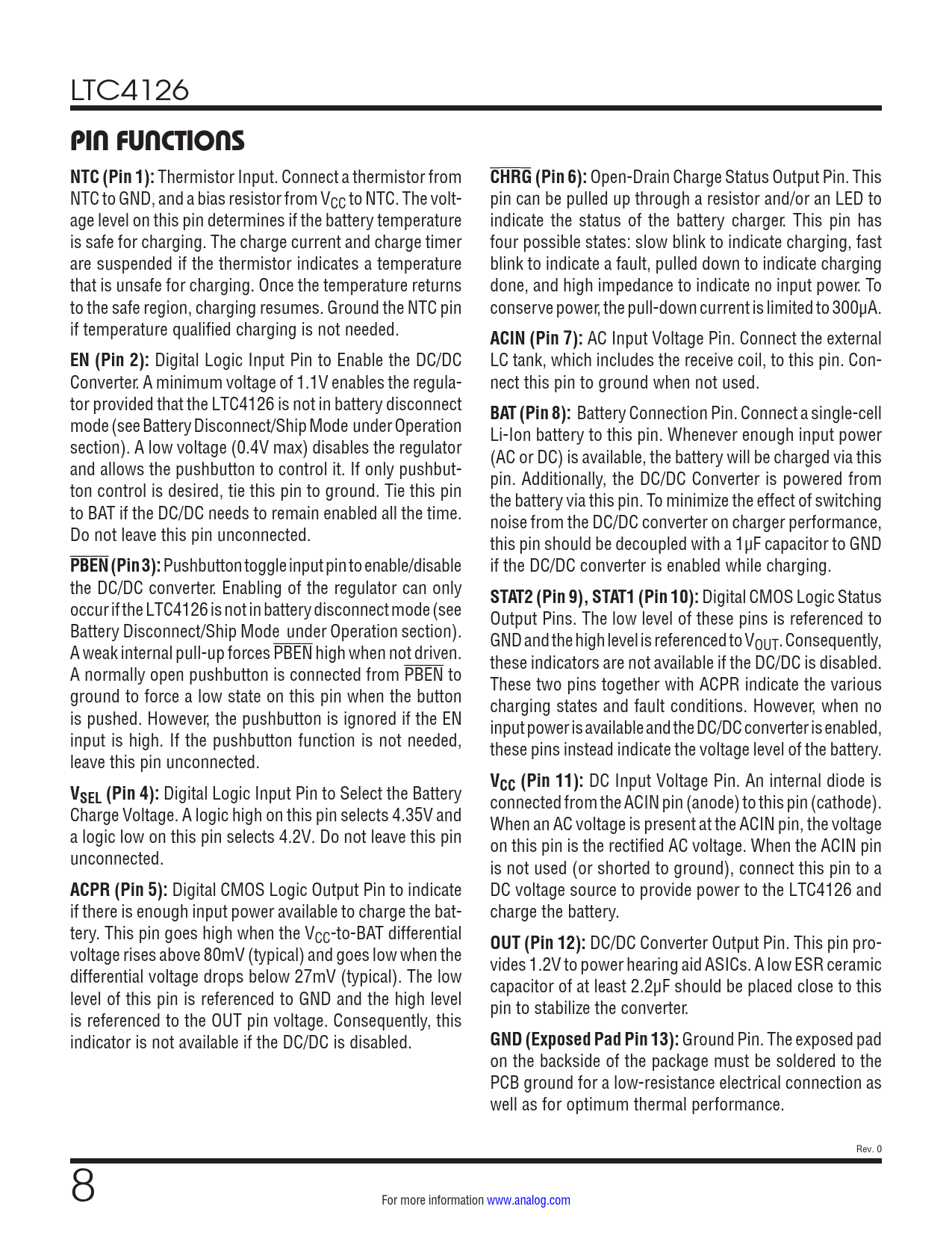 Pages / Page22 / 8 — PIN FUNCTIONS NTC (Pin 1):. CHRG (Pin 6):. ACIN (Pin 7):. EN (Pin 2):. …