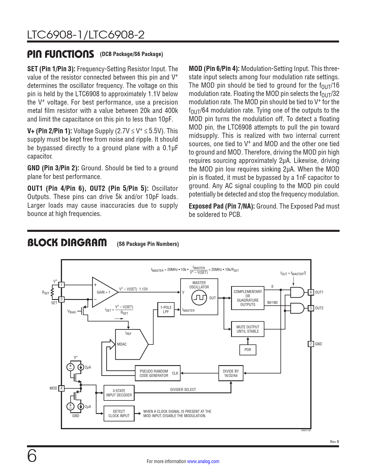 Datasheet LTC6908-1, LTC6908-2 (Analog Devices) - 6