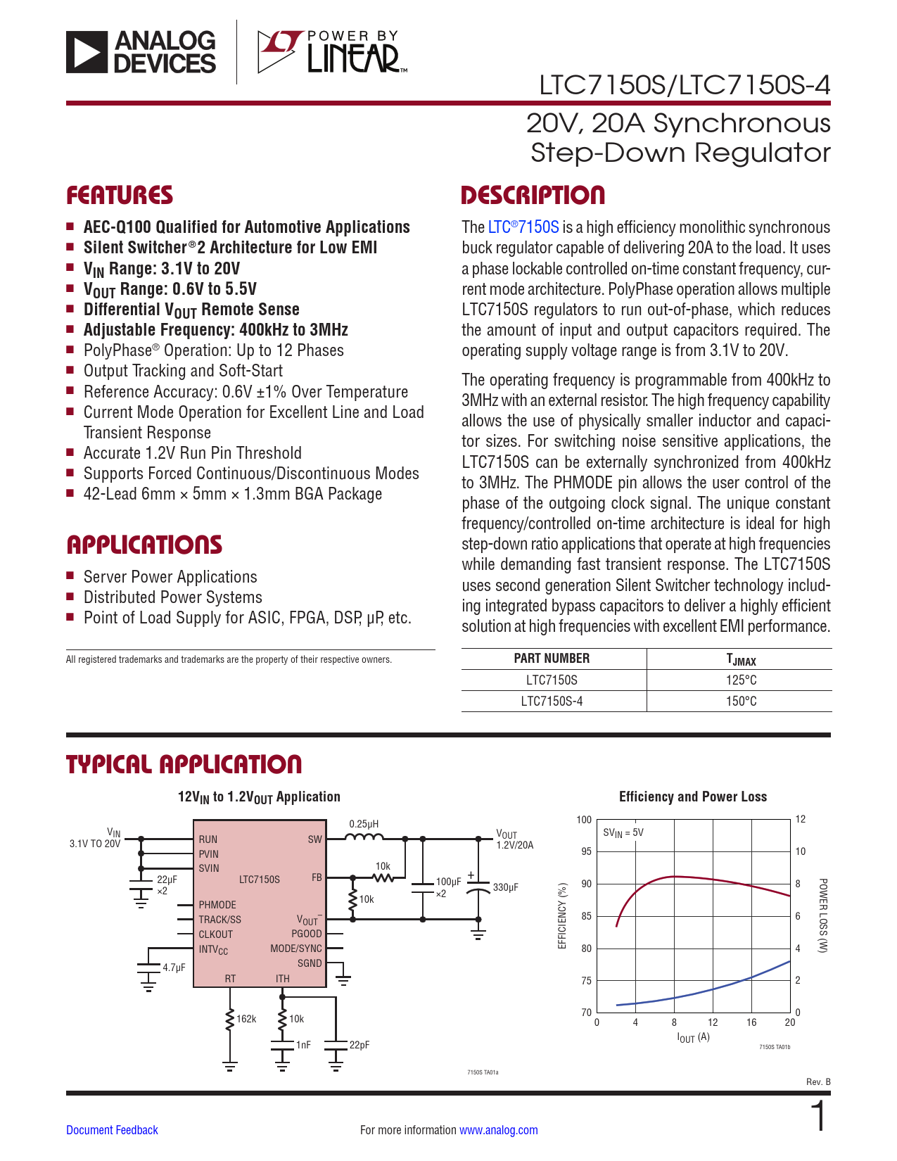 Datasheet LTC7150S, LTC7150S-4 Analog Devices, Revision: B