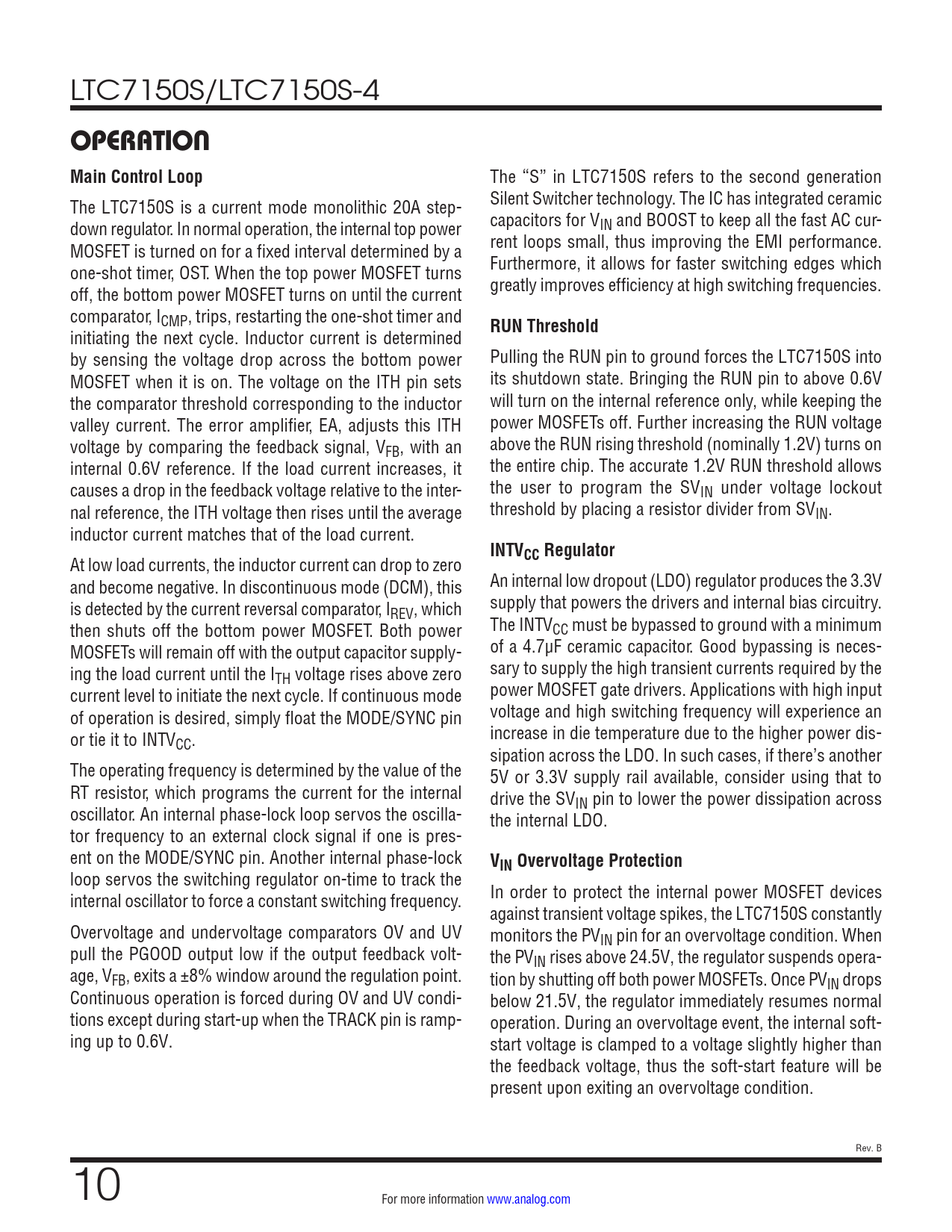OPERATION Main Control Loop. RUN Threshold. INTV. CC Regulator. VIN Overvoltage Protection