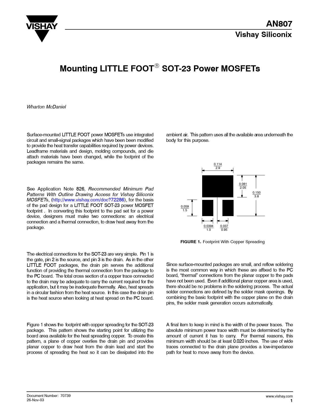 AN807. Vishay Siliconix. Mounting LITTLE FOOT. SOT-23 Power MOSFETs. FIGURE 1