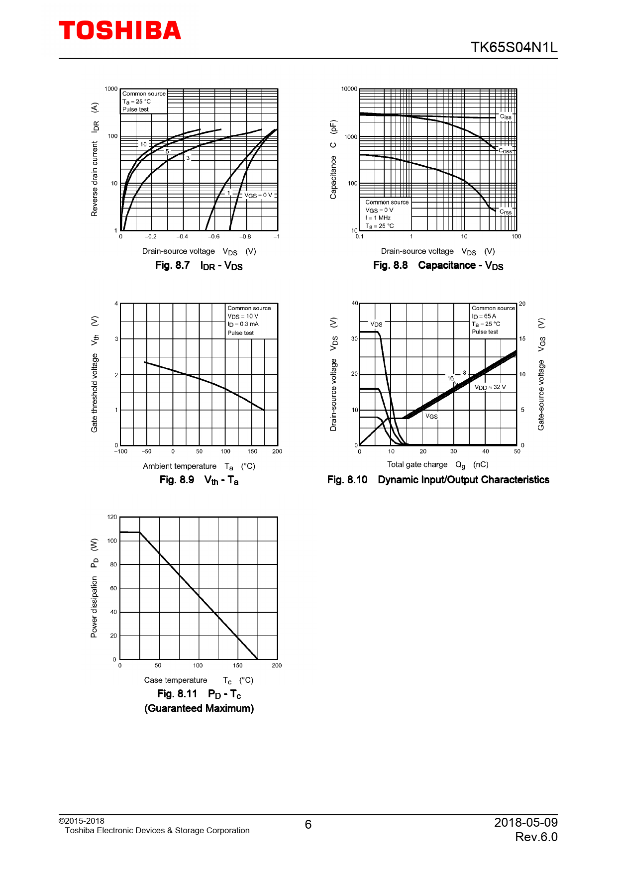 TK65S04N1L. Fig. 8.7. IDR. -. VDS. Fig. 8.8. Capacitance. -. VDS. Fig. 8.9. Vth. -. Ta. Fig. 8.10. Dynamic. Input/Output. Characteristics. Fig. 8.11. PD. -. Tc