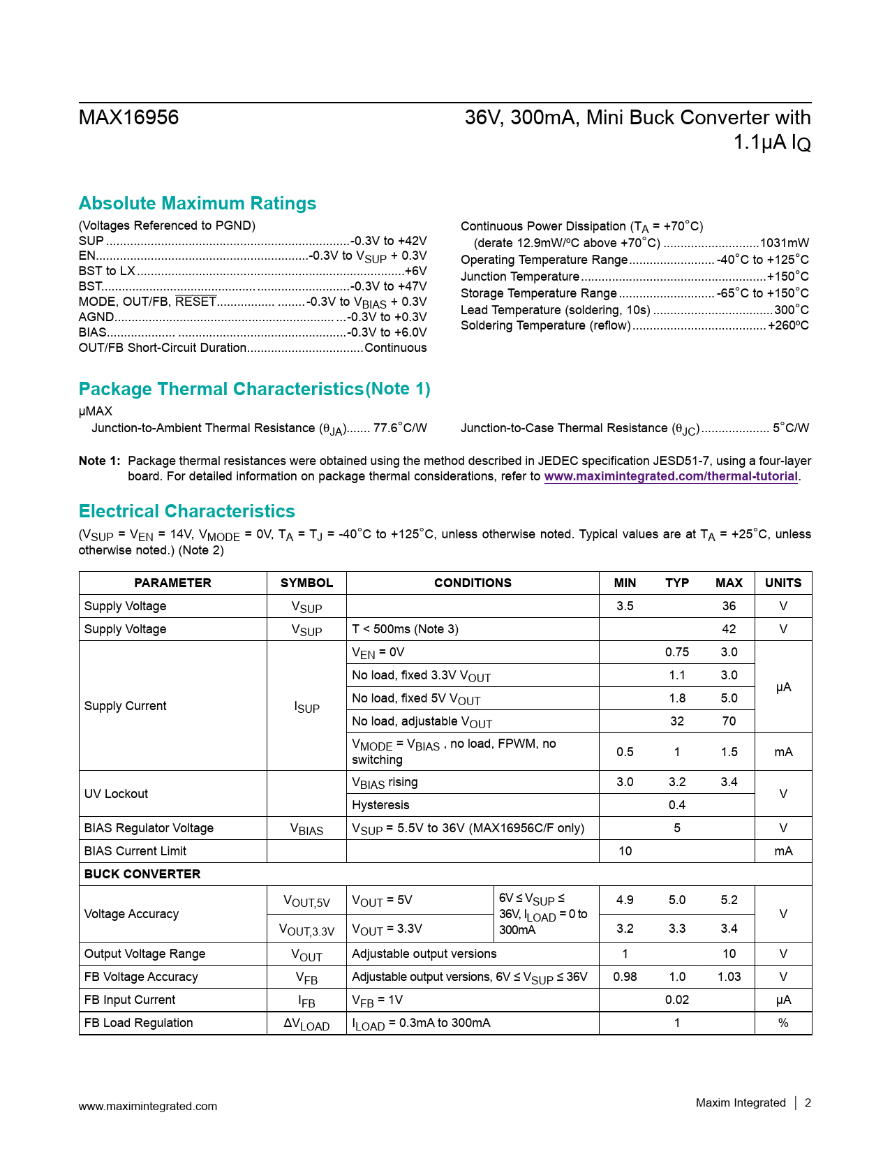 Absolute Maximum Ratings Package Thermal Characteristics(Note 1) Note 1: www.maximintegrated.com/thermal-tutorial