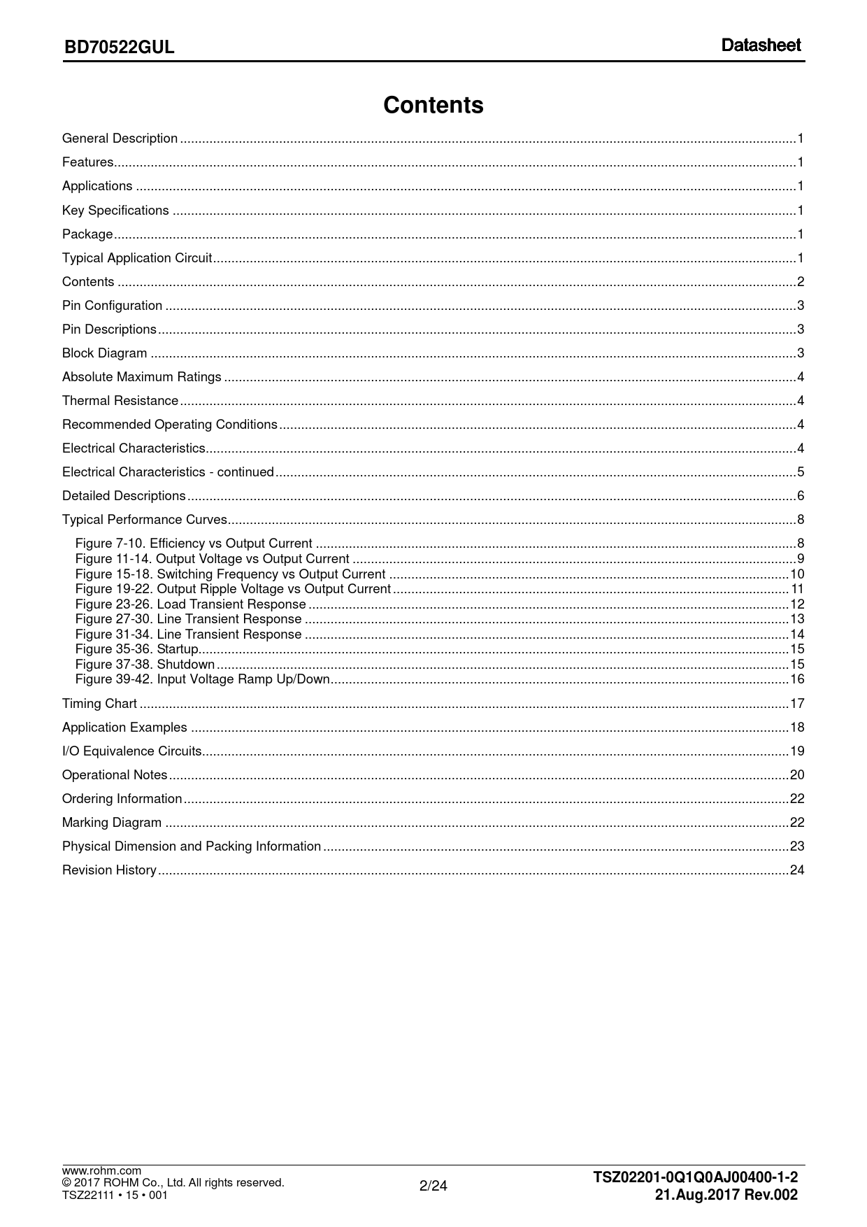 | Pages / Page | 28 / 2 — BD70522GUL. Contents. TSZ02201-0Q1Q0AJ00400-1-2. 21.Aug.2017 Rev.002 |