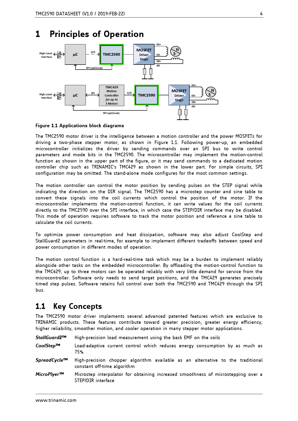 1 Principles of Operation 0A+ MOSFET S/D High-Level TMC2590 Driver 0A- Interface Stage 0B+ 0B- SPI (optional) TMC429 Motion SPI