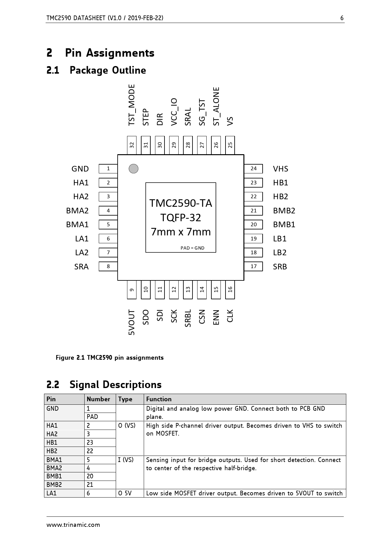 Figure 2.1 TMC2590 pin assignments 2.2 Signal Descriptions Pin Number Type Function