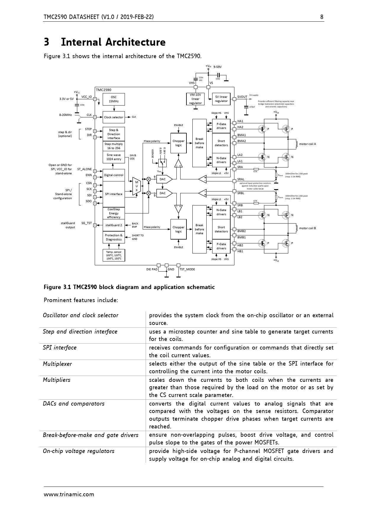 3 Internal Architecture Figure 3.1 TMC2590 block diagram and application schematic