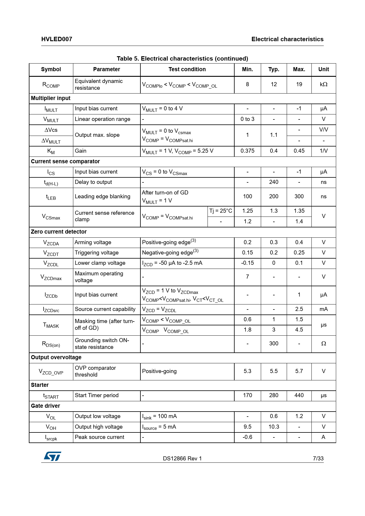 Pages / Page33 / 7 — HVLED007. Electrical characteristics. Table 5. Electrical characteristics …