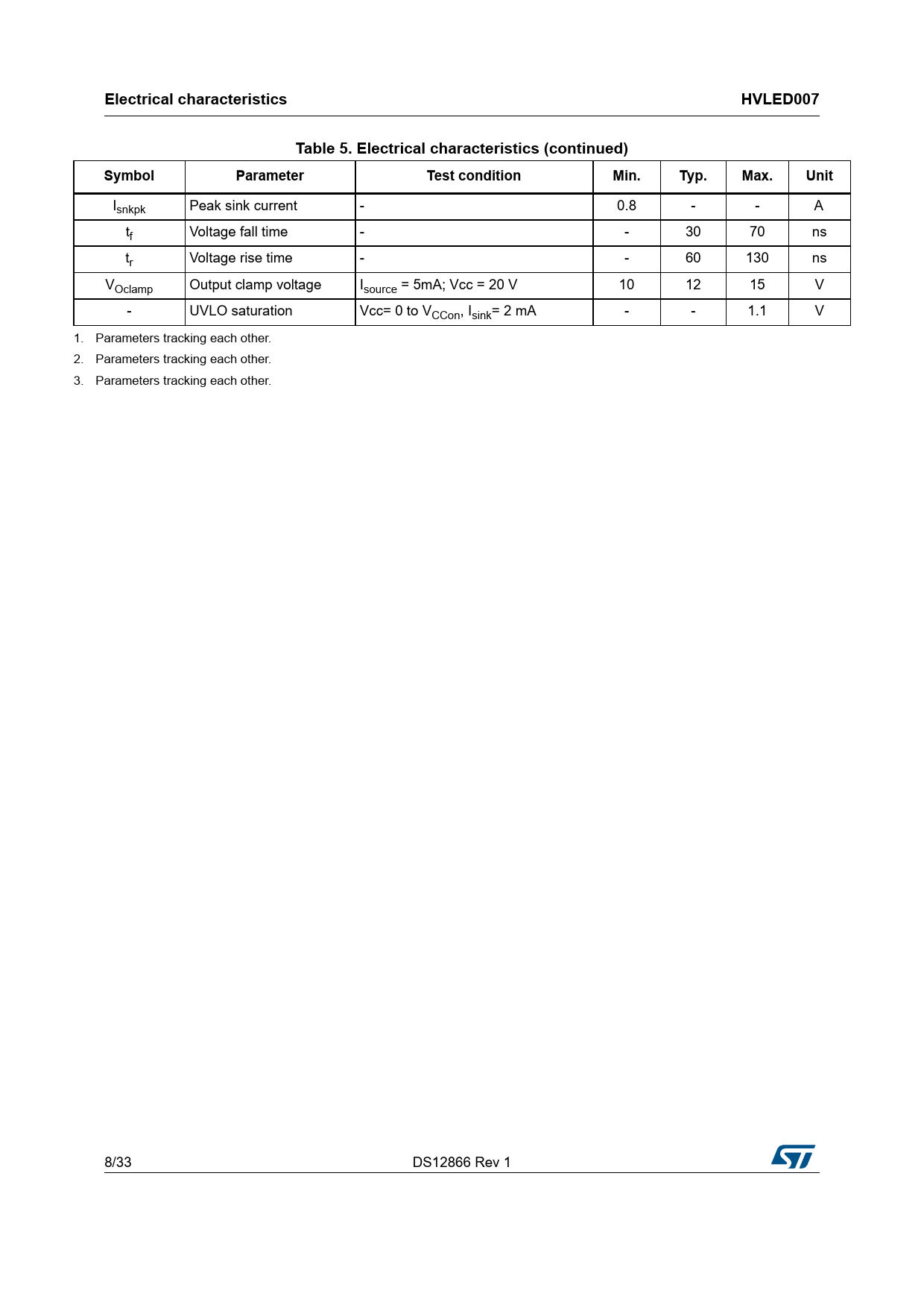 Pages / Page33 / 8 — Electrical characteristics. HVLED007. Table 5. Electrical characteristics …