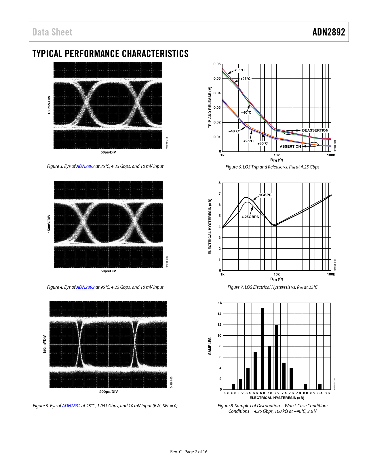 Data Sheet. ADN2892. TYPICAL PERFORMANCE CHARACTERISTICS. 0.06. +95. 0.05. +25. ) (V E 0.04. AS LE. 0.03. 150mV/DIV. –40. AND RE. 0.02. TRIP