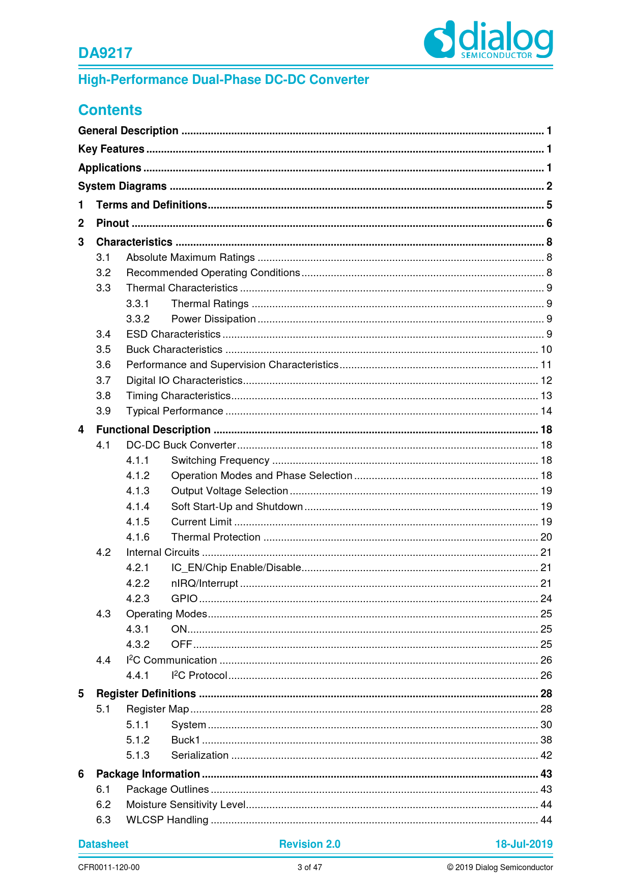 | Pages / Page | 47 / 3 — DA9217. High-Performance Dual-Phase DC-DC Converter. Contents. General … |