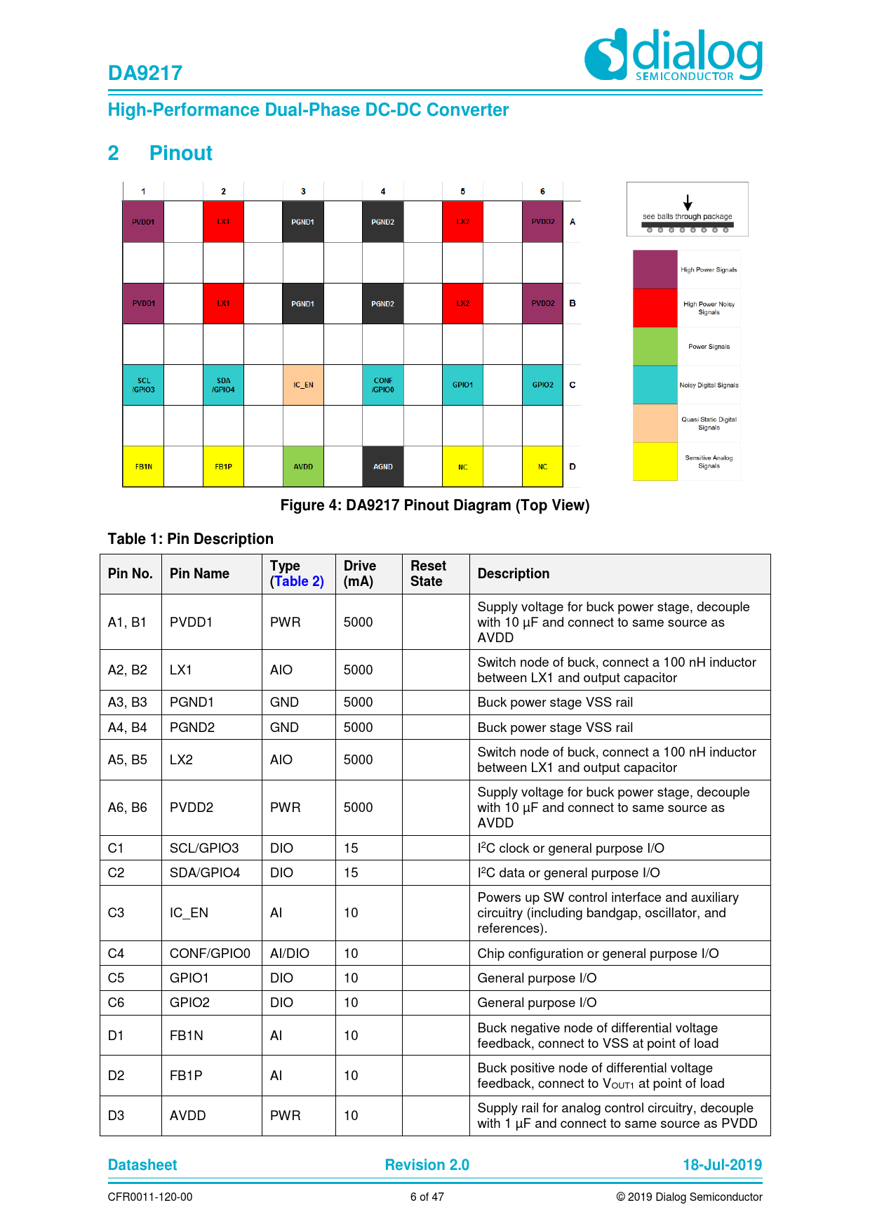 | Pages / Page | 47 / 6 — DA9217. High-Performance Dual-Phase DC-DC Converter. Pinout. Figure 4: … |