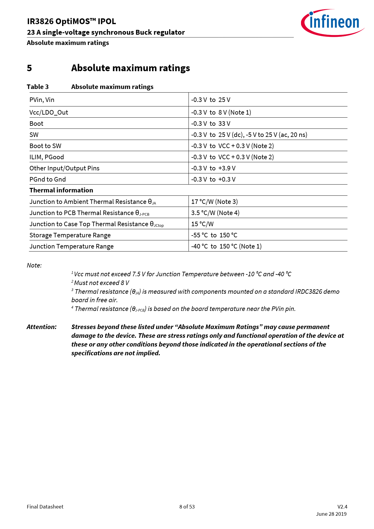 IR 8. OptiMOS™ IPOL. 23 A single-voltage synchronous Buck regulator. Absolute maximum ratings. Table 3. Thermal information
