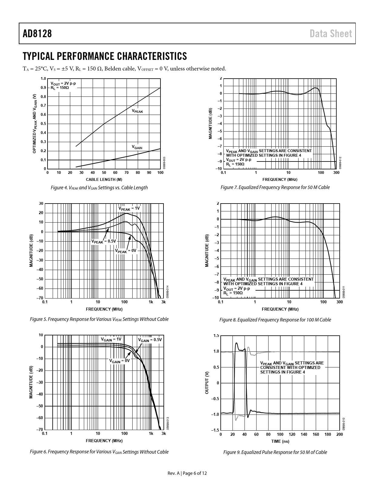 AD8128. Data Sheet. TYPICAL PERFORMANCE CHARACTERISTICS. 1.0. VOUT = 2V p-p. 0.9 R. L = 150Ω. (V) 0.8. 0.7. V GA. PEAK. 0.6. (dB). AND. K 0.5. TUDE