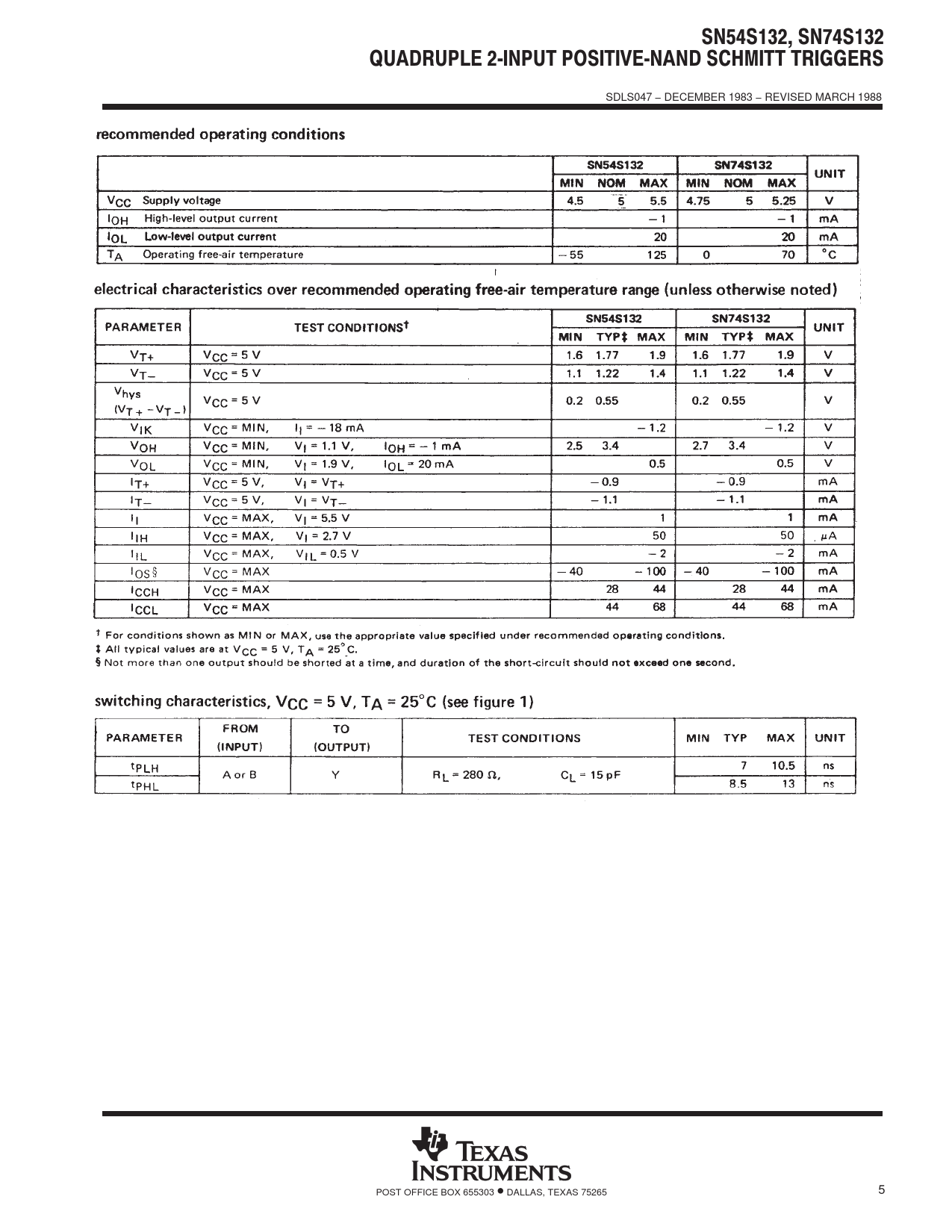 Datasheet SN54132, SN54LS132, SN54S132, SN74132, SN74LS132, SN74S132 (Texas Instruments) - 5