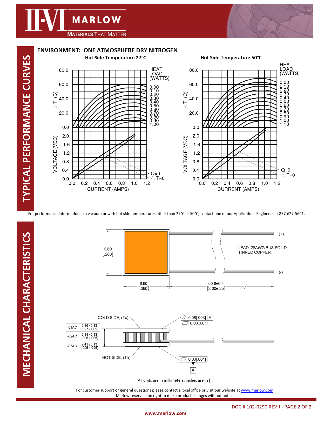 All units are in millimeters, inches are in []. For customer support or general questions please contact a local office or visit our website at www.marlow.com. Marlow reserves the right to make product changes without notice. DOC # 102-0290 REV J - PAGE 2 OF 2