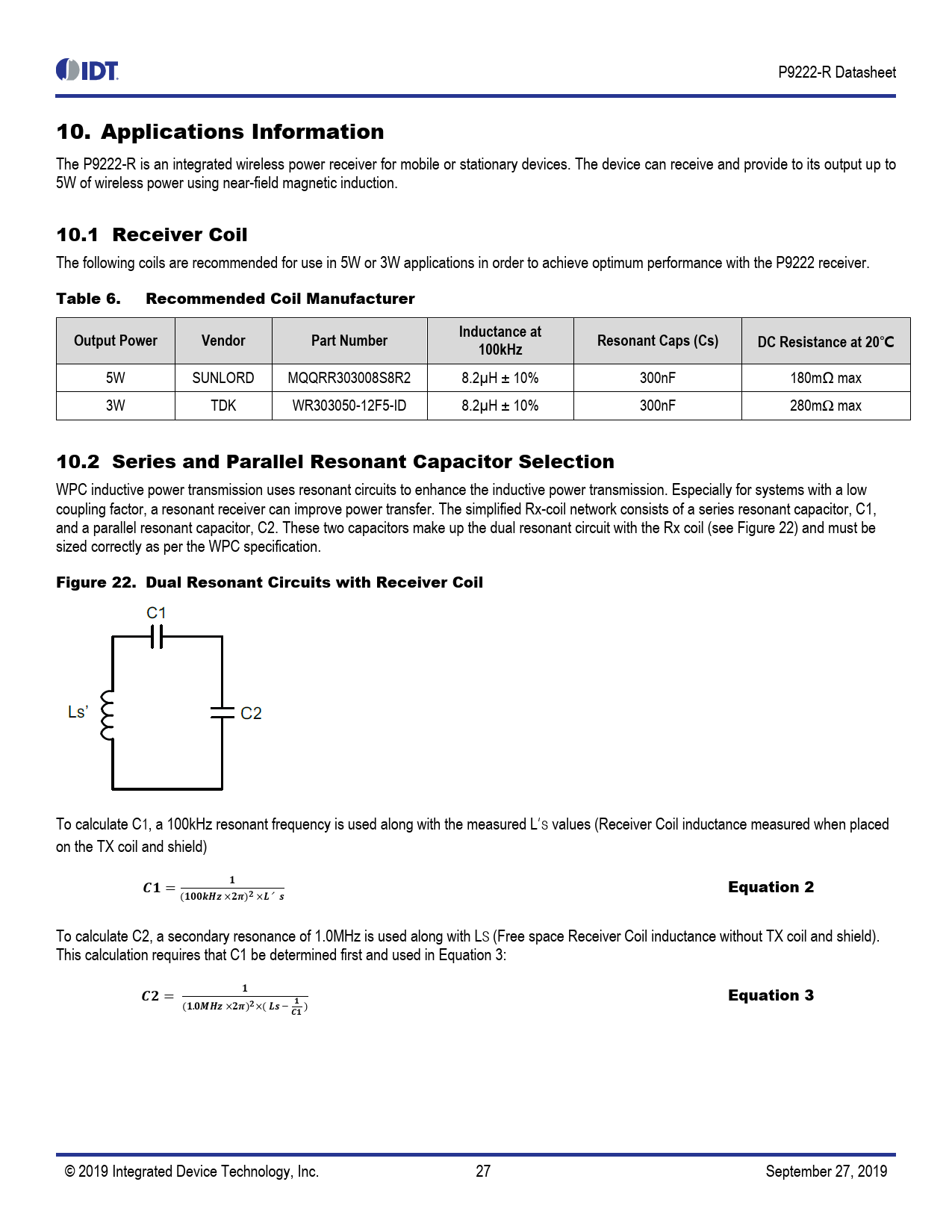 Pages / Page | 52 / 27 — P9222-R Datasheet 10. Applications Information |