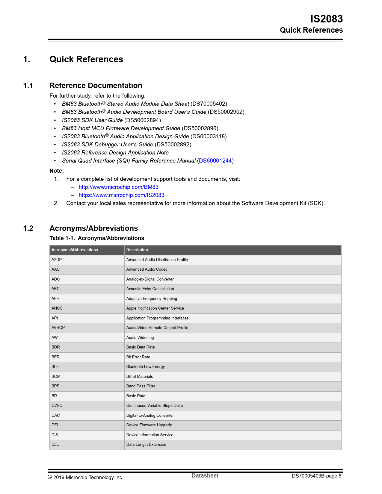 | Pages / Page | 65 / 6 — IS2083. Quick References. 1.1. Reference Documentation. Note: . 1.2. … |
