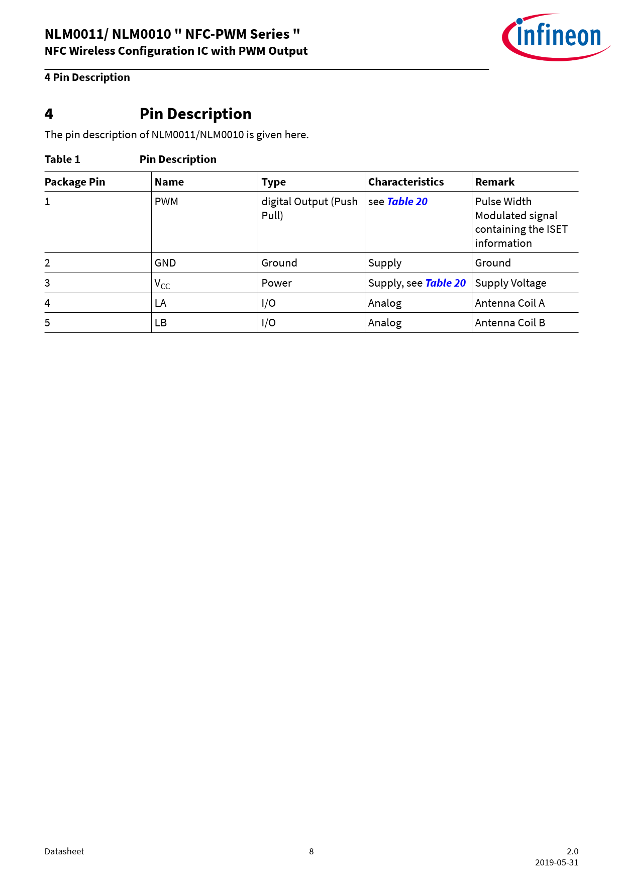 Datasheet NLM0011 / NLM0010 NFC-PWM Series (Infineon) - 8