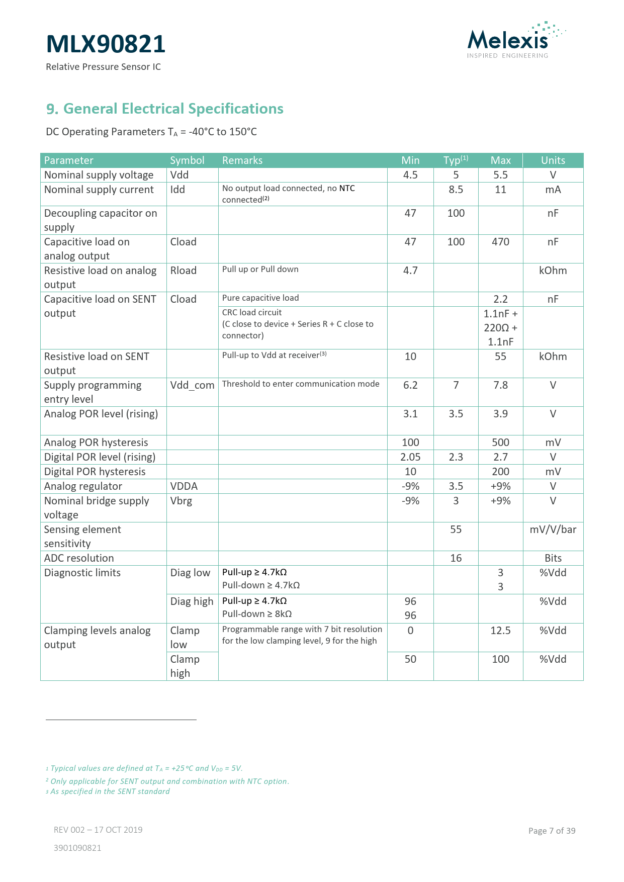 Pages / Page39 / 7 — MLX90821. General Electrical Specifications