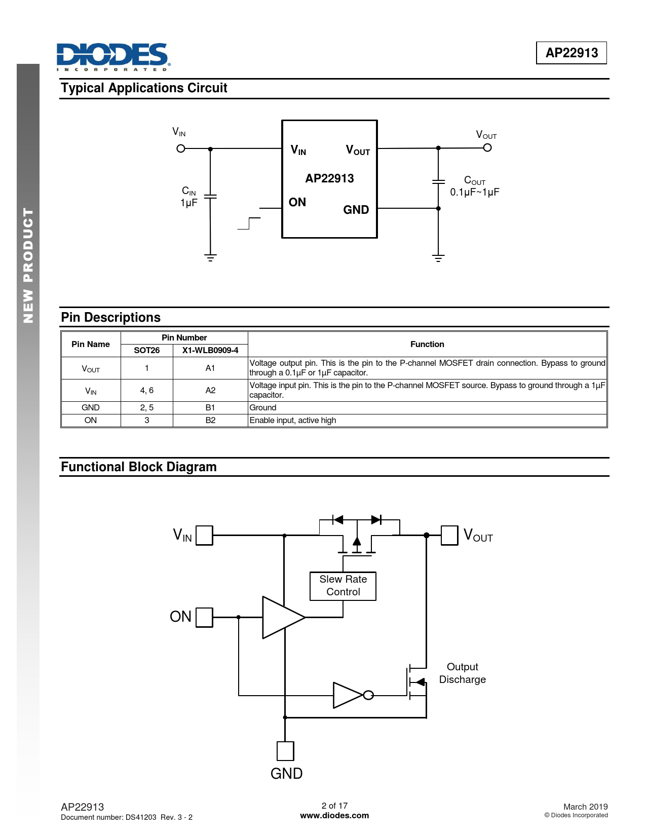 AP22913. Typical Applications Circuit. VIN. VOUT. GND. C U D O R. W E. Pin Descriptions. Pin Number. Pin Name. Function. SOT26. X1-WLB0909-4