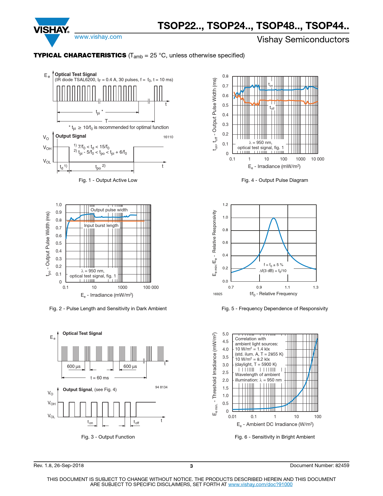 TSOP22.., TSOP24.., TSOP48.., TSOP44. TYPICAL CHARACTERISTICS Optical Test Signal Output Signal