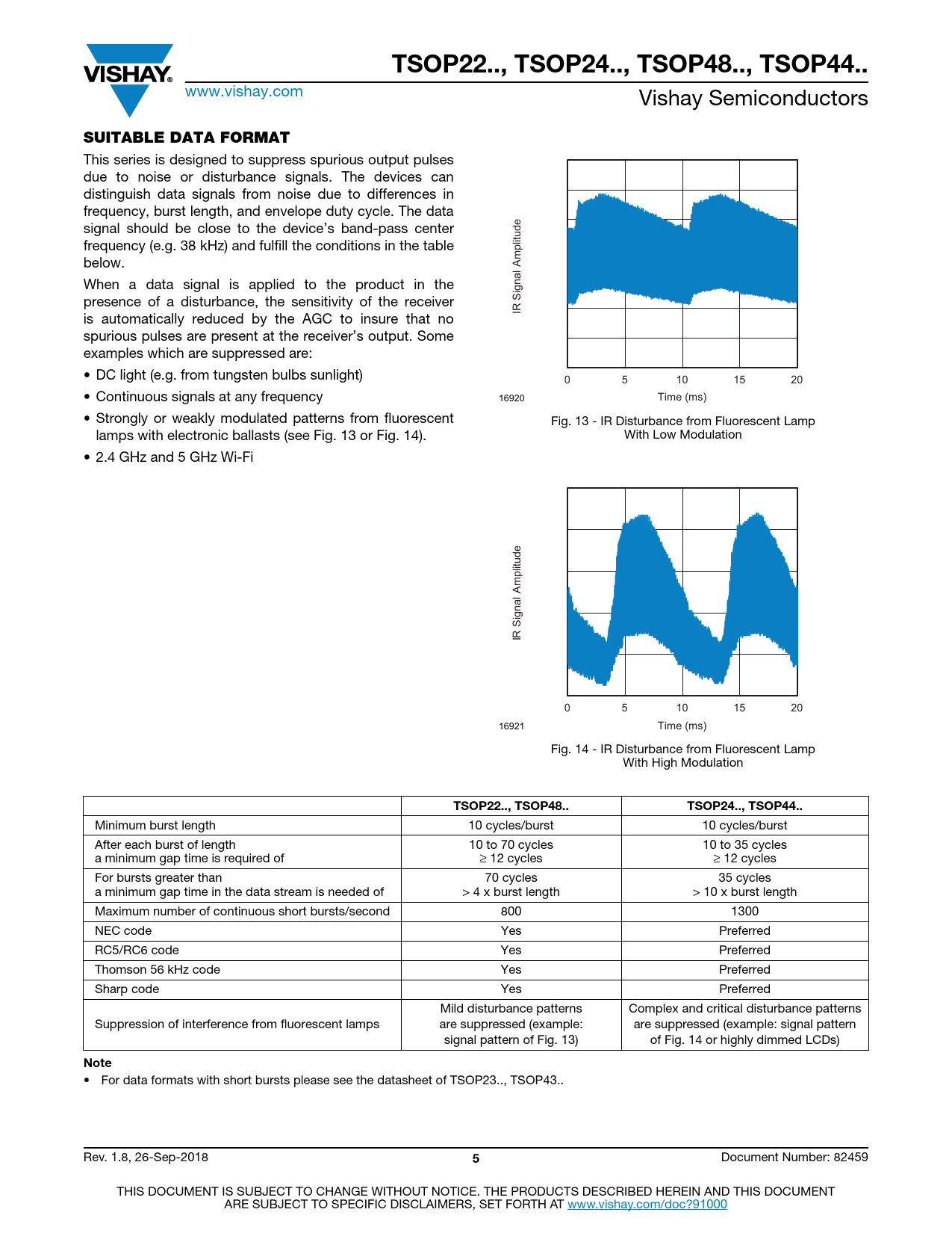 • For data formats with short bursts please see the datasheet of TSOP23.., TSOP43.. Rev. 1.8, 26-Sep-2018