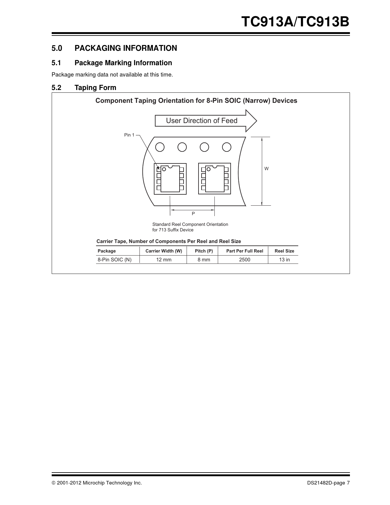 TC913A/TC913B 5.0 PACKAGING INFORMATION 5.1 Package Marking Information 5.2 Taping Form
