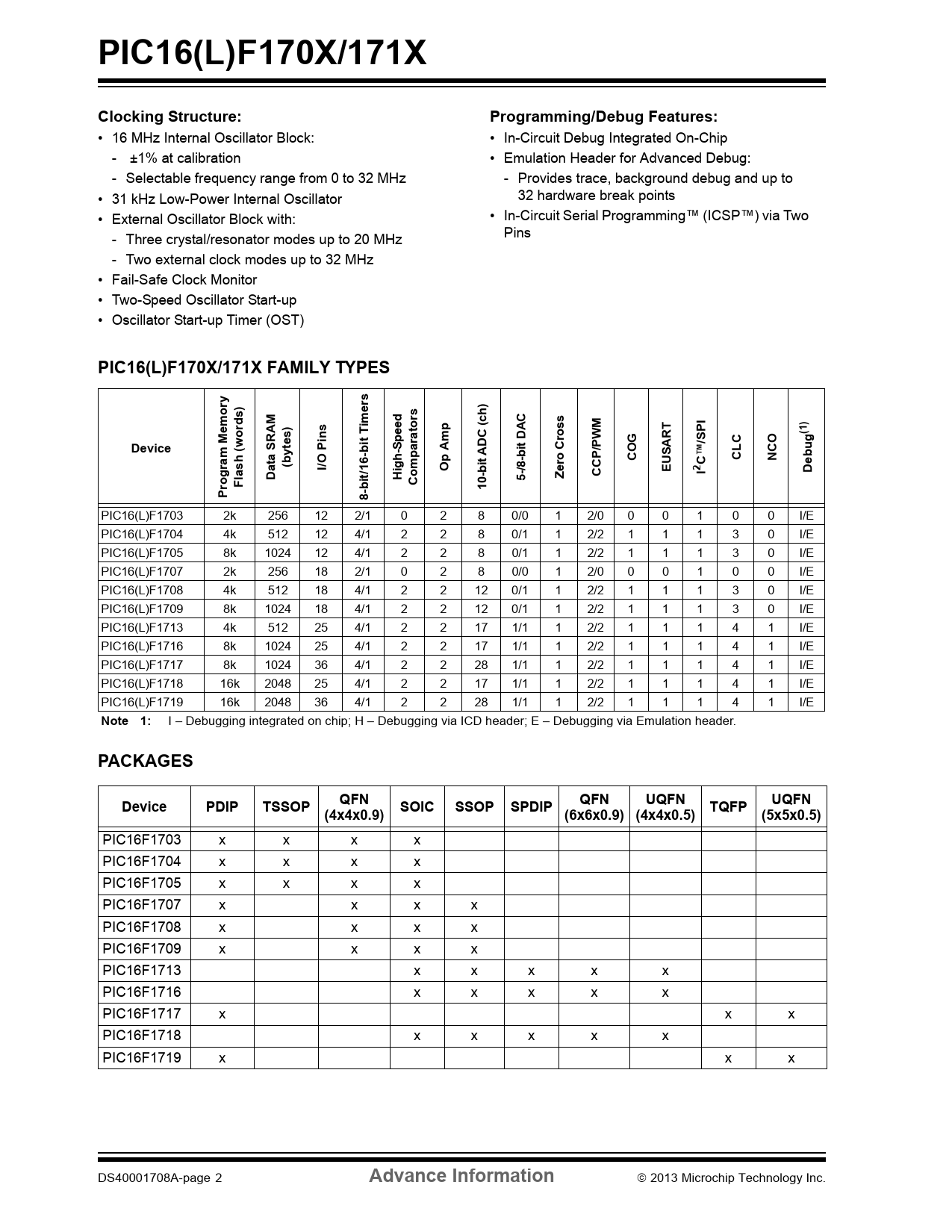 | Pages / Page | 18 / 2 — PIC16(L)F170X/171X. Clocking Structure:. Programming/Debug Features:. … |
