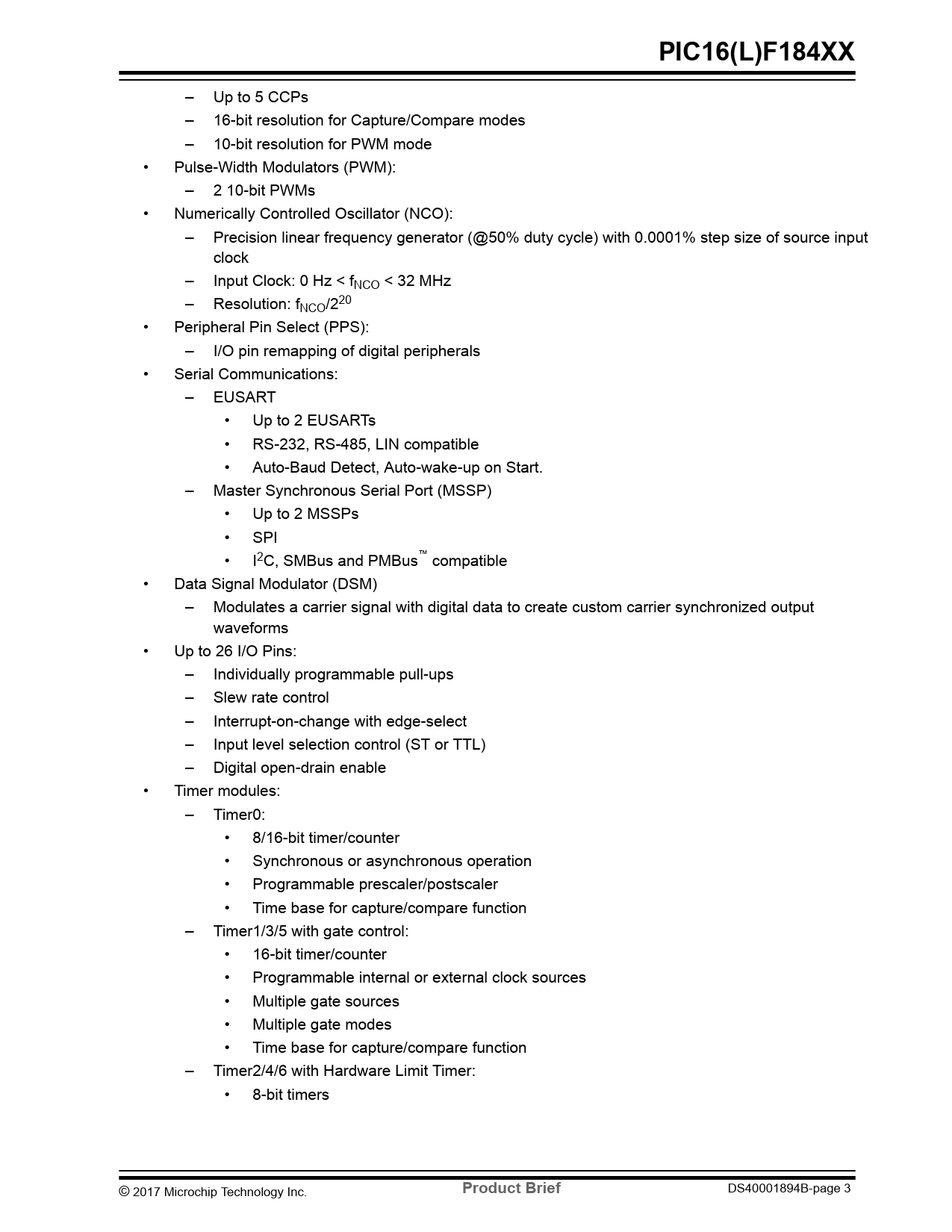 | Pages / Page | 18 / 3 — PIC16(L)F184XX. Product Brief |