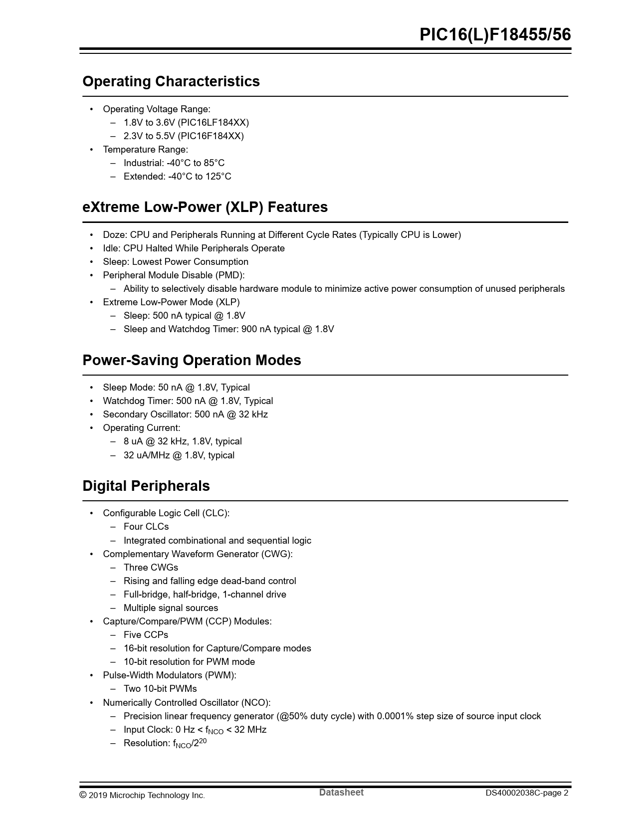 | Pages / Page | 706 / 2 — PIC16(L)F18455/56. Operating Characteristics. eXtreme Low-Power (XLP) … |